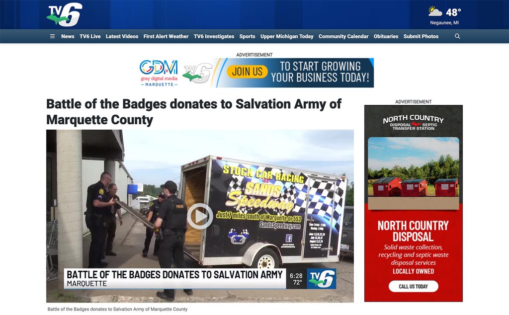 2025 Battle of the Badges WinnersMarquette City PoliceSheriff Greg Zyburn Having too much funMarquette City Police2025 WinnersBattle of the Badges RecipientMarquette Salvation Army received 1,200